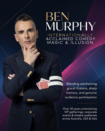 Ben Murphy’s close-up/roving magic has been a huge success for casinos, product launches, functions, corporate events, and more - not just because he is an expert at the art of sleights, but because he is a 1st class performer who entertains in such a refined and polished way.