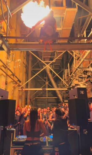 Size of performance depends on size of stage and venue. Can do anything from small indoor venues, with LEDs, to 300 person seated arenas and multi thousand audience festivals.