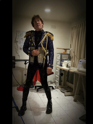 Costumed roving saxophonist.