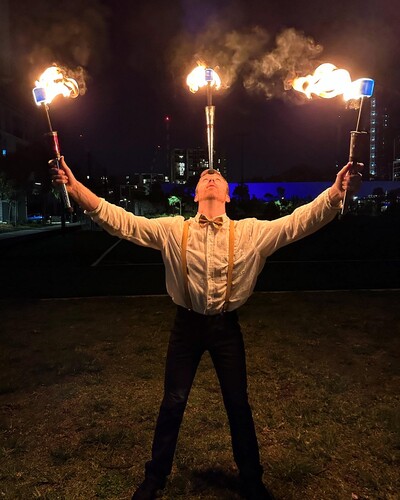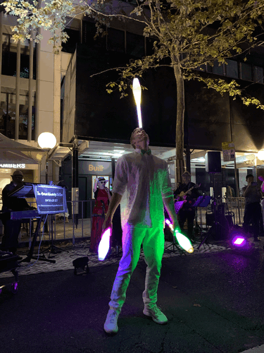 Josh Croall is an award-winning international performer who has toured the world with his spectacular blend of acrobatics and juggling. From corporate functions and festivals to private parties, Josh’s shows deliver high-energy entertainment that keeps audiences amazed, laughing, and fully engaged. His juggling routines feature a variety of props from balls, clubs, and rings to glowing LED and fire torches for dramatic effect. Combined with tumbling, hand balancing, and dance, Josh creates a visually stunning experience tailored to any event.